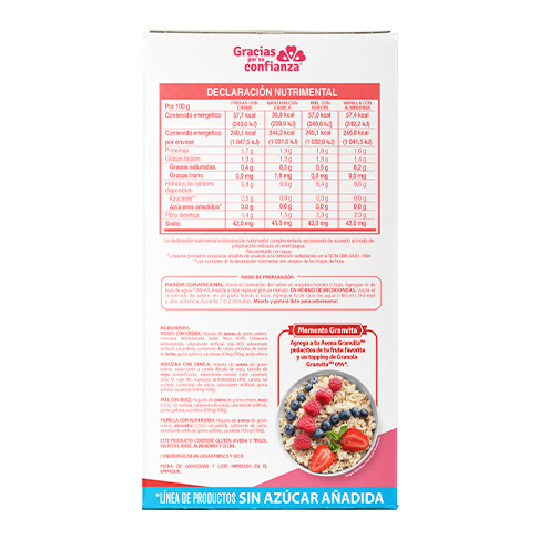 Avena Instantánea Integral 0 % Azúcar* 280 g