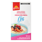 Avena integral de preparación instantánea sabor fresa, sin azúcar añadida.