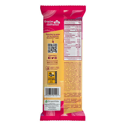 Galletas elaboradas a base de avena con arándanos y chispas de yogurt en una presentación práctica para llevarla a donde quieras.